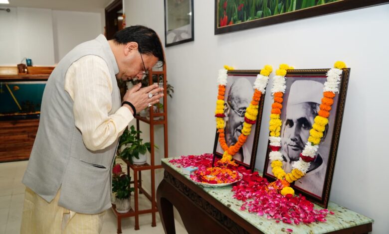 मुख्यमंत्री श्री पुष्कर सिंह धामी ने गांधी जयंती के अवसर पर मुख्यमंत्री आवास में राष्ट्रपिता महात्मा गांधी का स्मरण कर उन्हें श्रद्धा सुमन अर्पित किए।