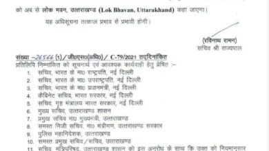 उत्तराखण्ड में बड़ा बदलाव—राजभवन अब कहलाएगा ‘लोक भवन’