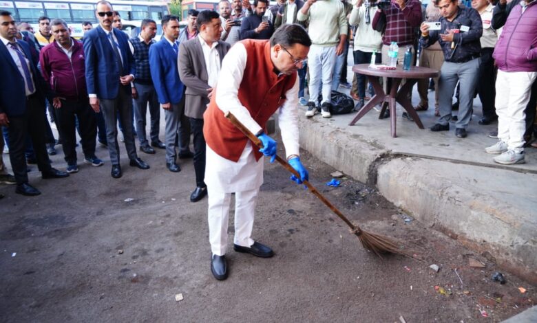 मुख्यमंत्री धामी का आईएसबीटी देहरादून में औचक निरीक्षण, गंदगी देखकर खुद उठाई झाड़ू