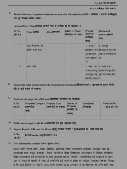 BJP विधायक उमेश शर्मा काऊ समेत अन्य पर मुकदमा दर्ज, शिक्षा निदेशक पर हमले से सियासी हलचल तेज