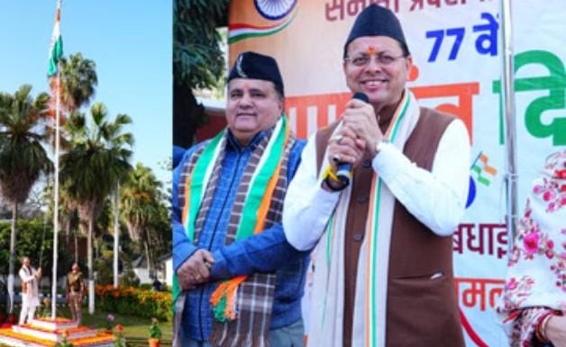 CM धामी ने 77वें गणतंत्र दिवस पर आवासीय परिसर में फहराया ध्वज, प्रदेशवासियों को दी शुभकामनाएं