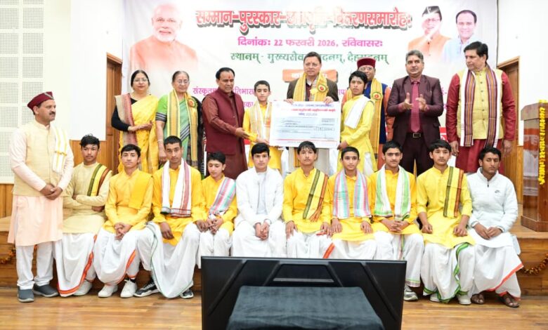 CM धामी ने संस्कृत छात्र प्रतिभा सम्मान कार्यक्रम में लिया भाग, विद्यार्थियों को प्रदान की छात्रवृत्ति