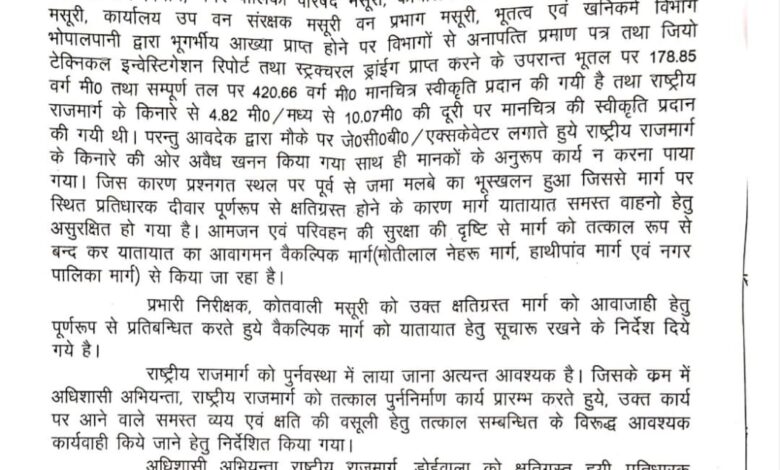 आवासीय नक्शे पर होटल हेतु अवैध खुदाई व राष्ट्रीय राजमार्ग गंभीर क्षति की 3 आरोपियों से होगी भरपाई; चार्जसीटी भी जल्द होगी सबमित
