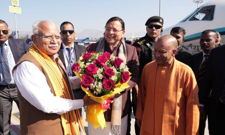 रक्षा मंत्री राजनाथ सिंह, केंद्रीय मंत्री मनोहर लाल खट्टर और सीएम योगी आदित्यनाथ पहुंचे उत्तराखंड