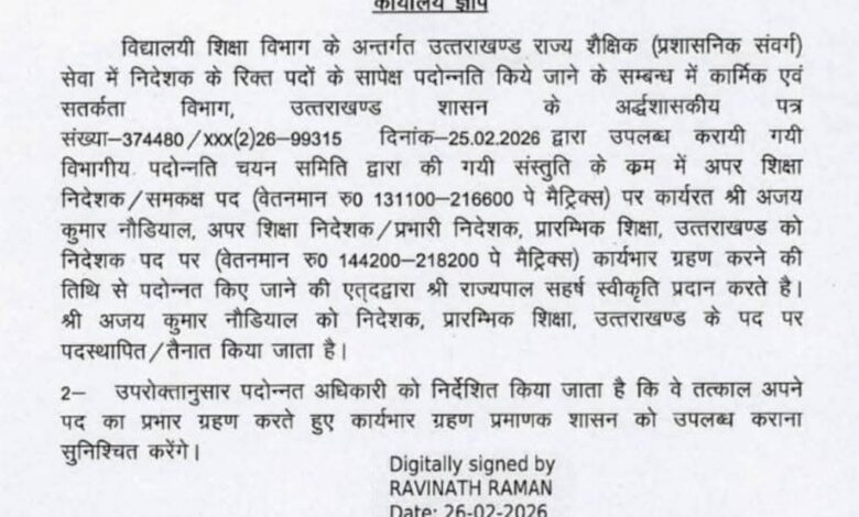 शिक्षा विभाग: पिटाई वाली घटना के बाद अब शिक्षा विभाग मे अजय नौडियाल की निदेशक पद पर पदोन्नति