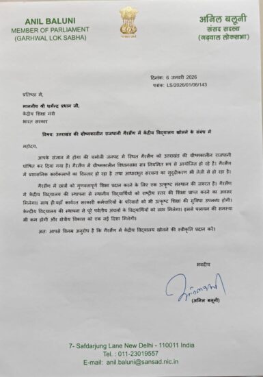गैरसैंण सहित आसपास के पर्वतीय क्षेत्रों के विद्यार्थियों के लिए केंद्रीय विद्यालय की स्थापना शिक्षा के क्षेत्र में एक ऐतिहासिक पहल सिद्ध होगी, जिससे गुणवत्तापूर्ण शिक्षा के नए द्वार खुलेंगे और क्षेत्र के समग्र विकास को मजबूती मिलेगी।