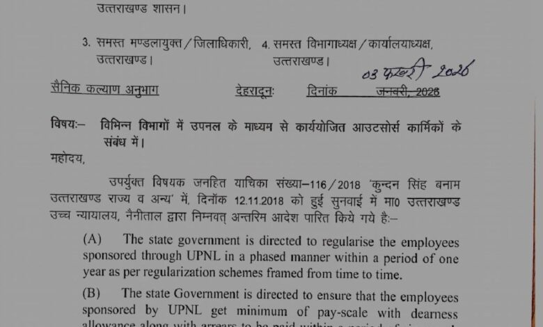 4. अतः कृपया विभागों में, उपनल के माध्यम से नियोजित कार्मिकों के सन्दर्भ में, उपरोक्तानुसार नियमानुसार समयबद्ध रूप से आवश्यक कार्यवाही सम्पन्न करने एवं कृत कार्यवाही से समय-समय पर शासन को अवगत कराने का कष्ट करें।