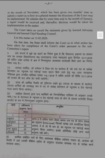 2. उक्त आदेश के अनुपालन हेतु, ‘उत्तराखण्ड उपनल कर्मचारी संघ’ द्वारा अवमानना संख्या-402/2024 योजित किया गया, जिसमें दिनॉक 20.11.2025 की सुनवाई में मा० उत्तराखण्ड उच्च न्यायालय, नैनीताल द्वारा निम्नवत आदेश दिये गये है:-
