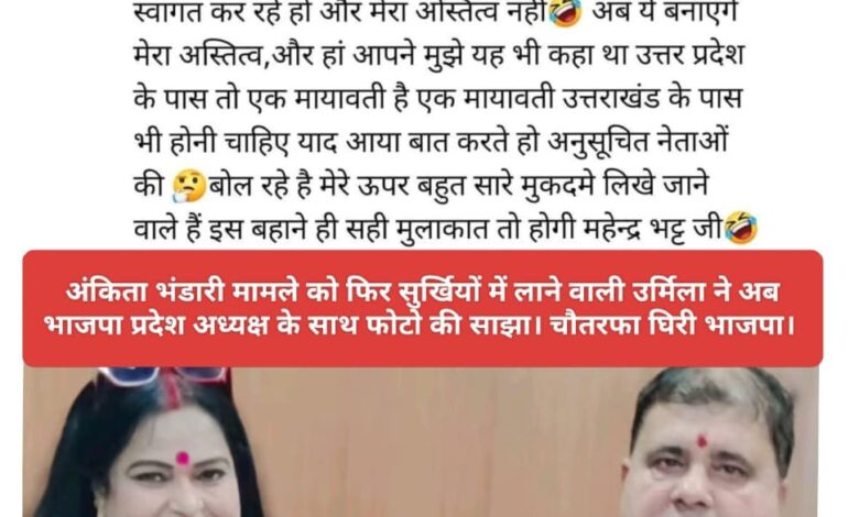 देहरादून: अंकिता भंडारी हत्याकांड में “VIP” एंगल को लेकर उठे विवाद में अब नया मोड़ आ गया है। इस मामले में “VIP” का जिक्र करने वाली उर्मिला सुरेश राठौड़ ने एक बार फिर सोशल मीडिया पर प्रतिक्रिया दी है।