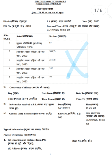 देहरादून में भाजपा से इस्तीफा दे चुकी आरती गौड़ ने उर्मिला व पूर्व विधायक राठौर पर धारा 67,78,308 (7),351 (2) 358 के तहत मुकदमा दर्ज करवा दिया है।